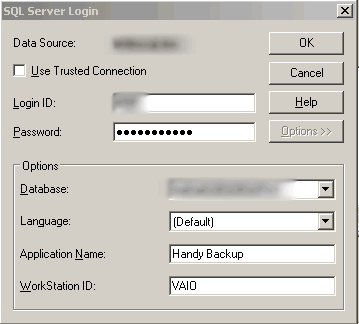 I was able to get handybackup to successfully backup my MS SQL database on my