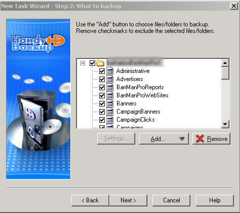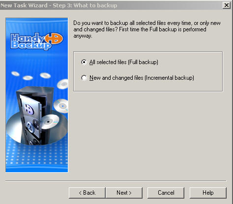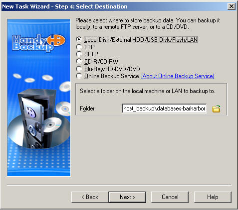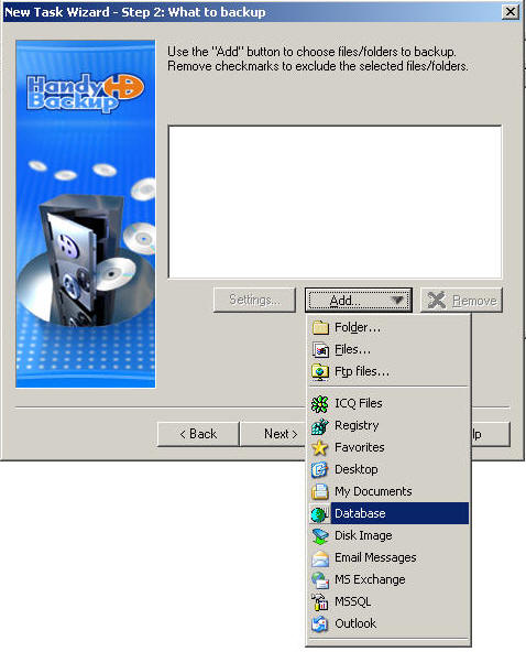 handybackup. This is different if you are backing up a database that is on your