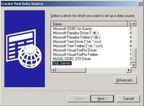 the correct driver to choose when downloading in MS SQL database using