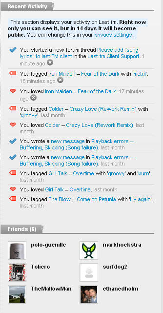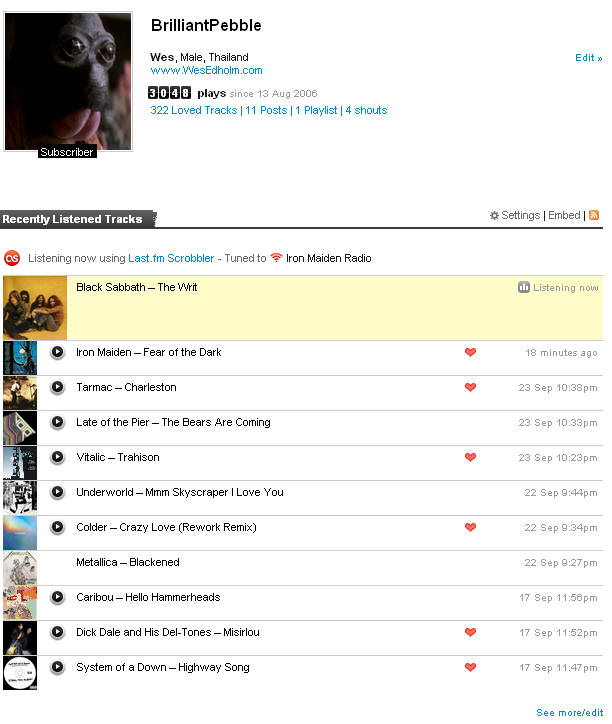 Here are a few screenshots of my last.FM page… I have only listened to 3048