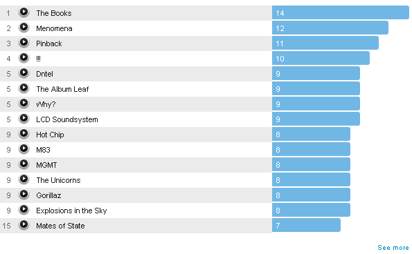 shown above is a list of the artists I have listened to most frequently over